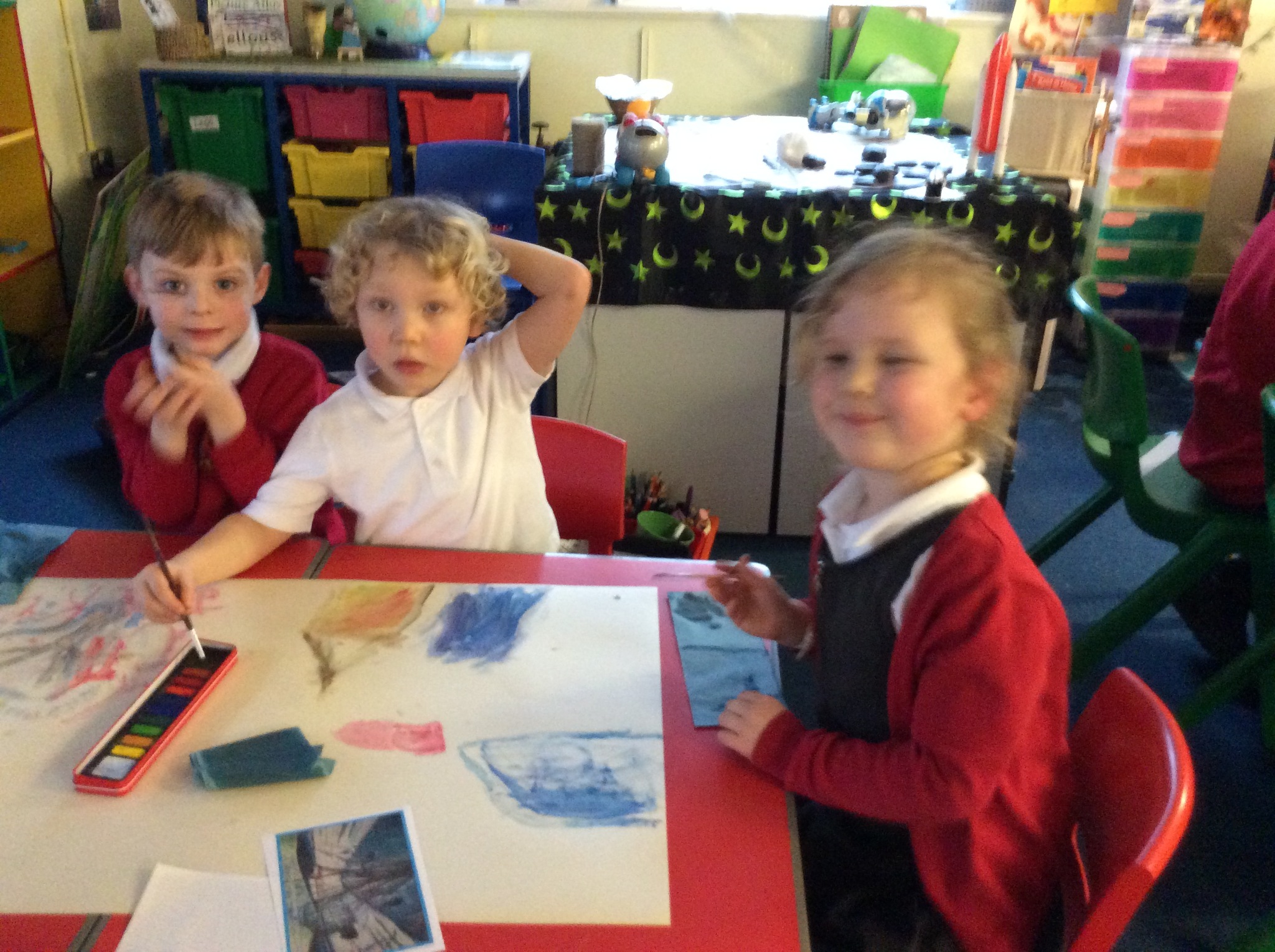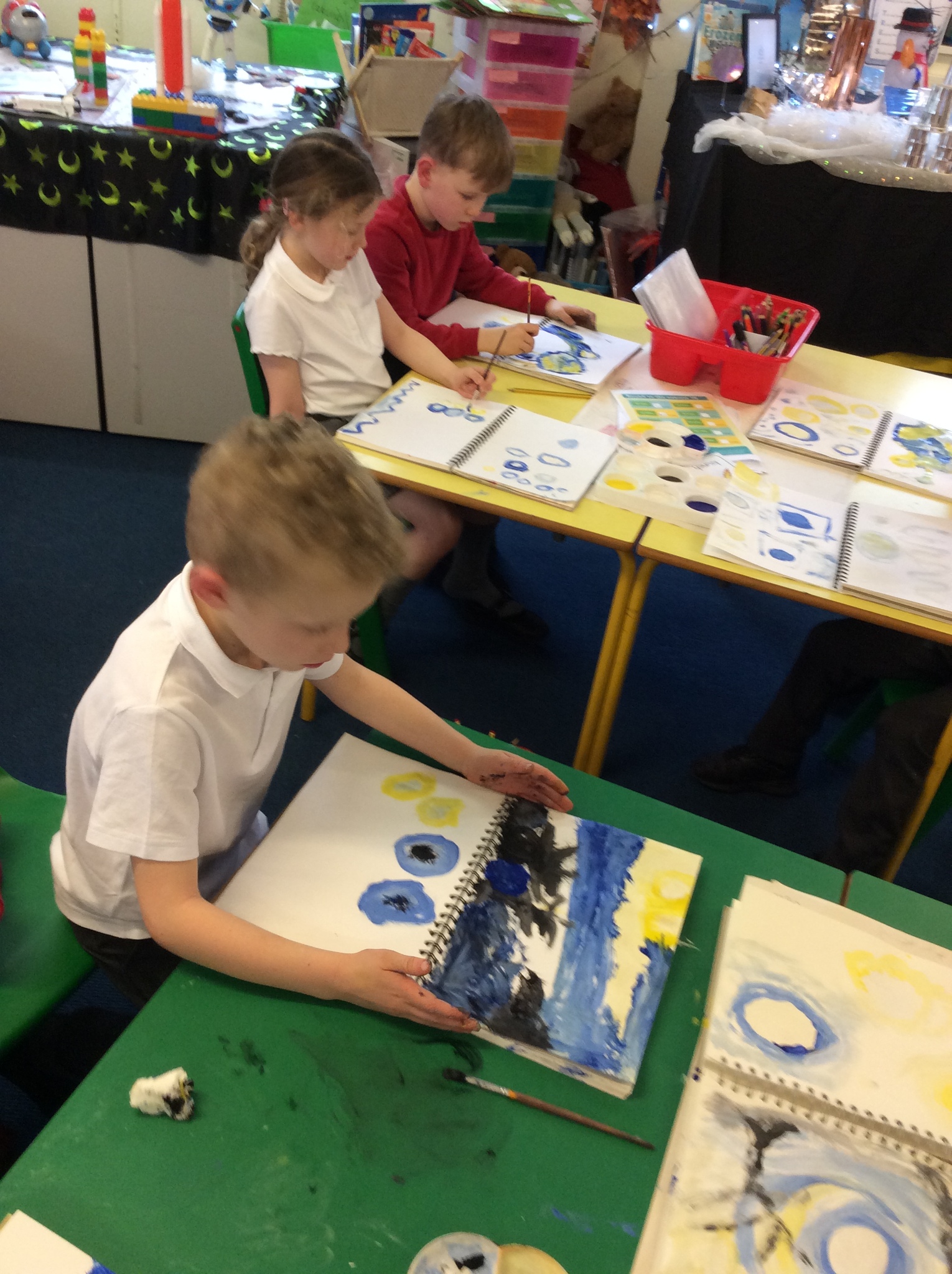 This week we have been thinking about the different colours that we think of in Winter and used this painting by Van Gogh to inspire our own art. We were amazed by the beauty that we saw on Wednesday when the Winter sun appeared and made 'Our Place'. We brought our bears and compared them to the first teddy bears. We have also enjoyed looking at another book by Mini Grey, 'Here comes Traction Man' and made designed new outfits for his adventures! We will find out next week what outfit granny gave him in the story!