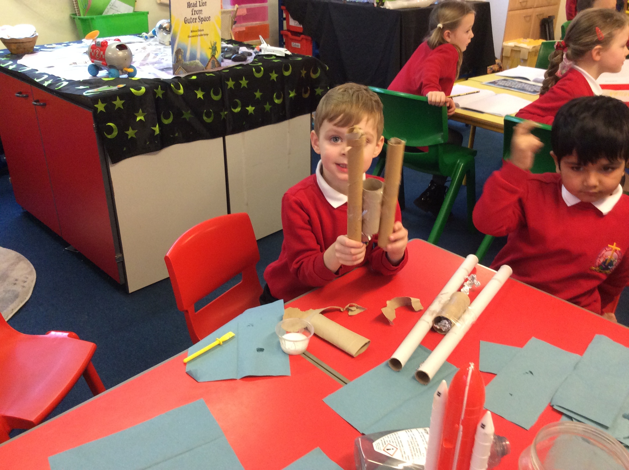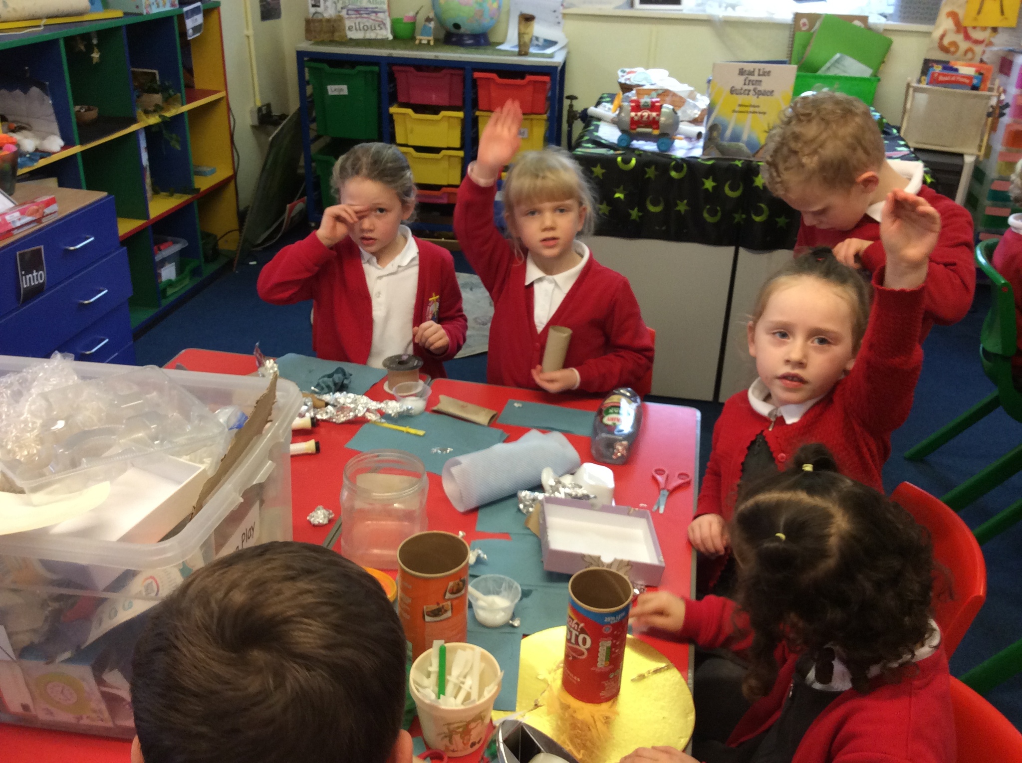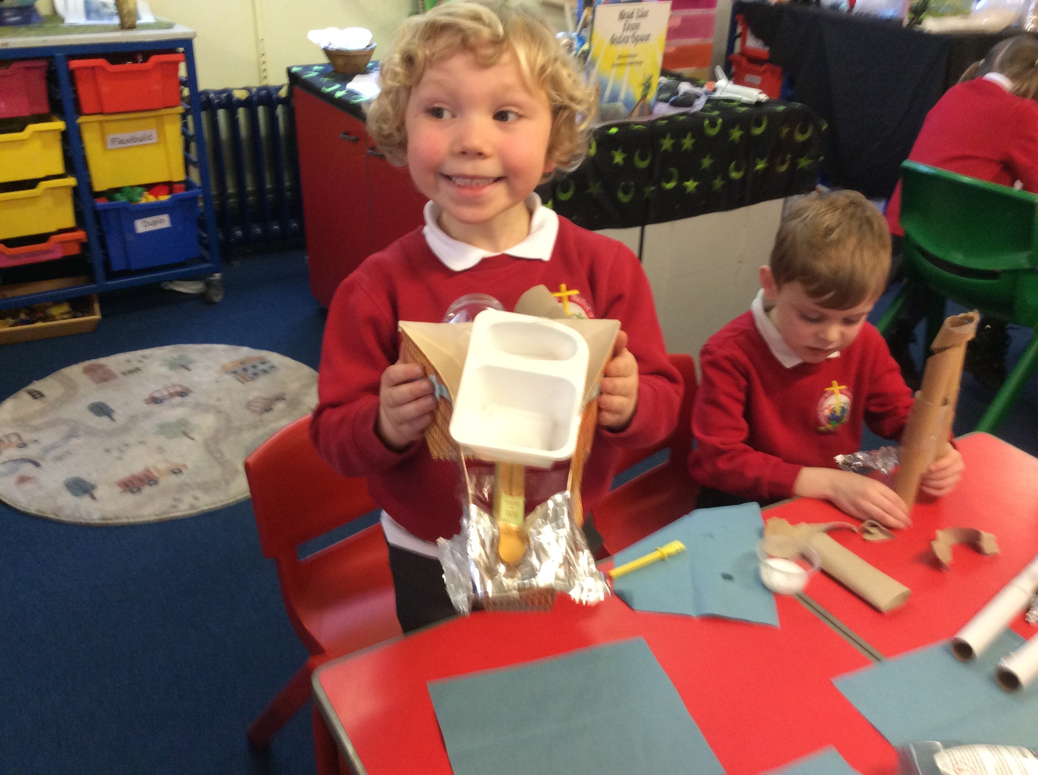 Another busy week these week we have been exploring telling time and investigating the different times we do different activities throughout the day. We have making a space area to re-enact our story toys in space. We enjoyed making models to bring our small world area to life!