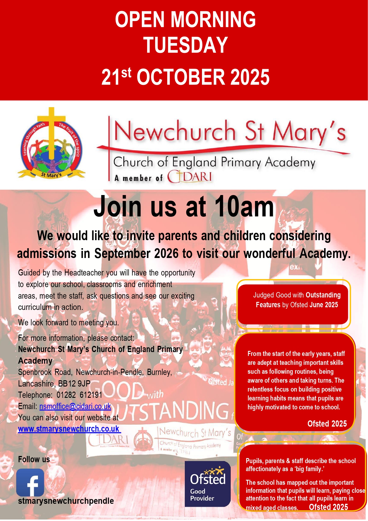 Open Morning Tuesday 21st October at 10am for September 2026 admissions